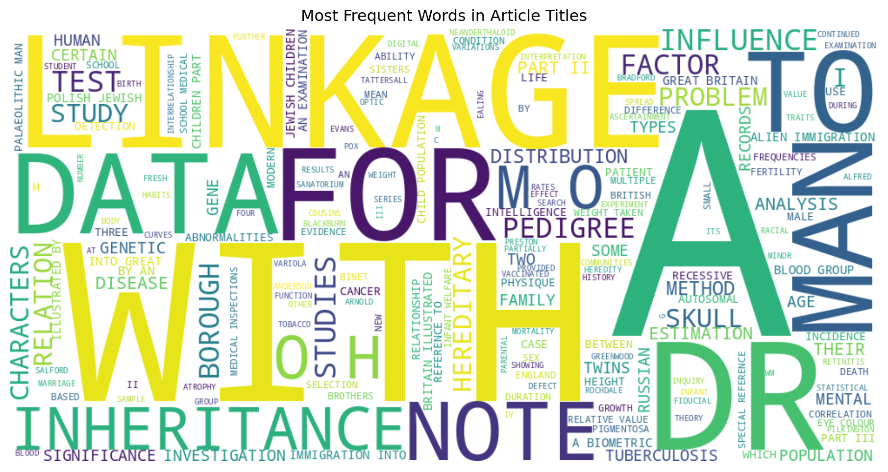 from wordcloud import WordCloudThese are graphs exploring the Annals of Eugenics and its articles, namely: